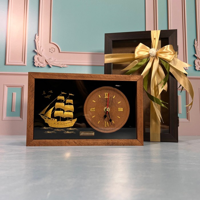 تابلو ساعت روکش طلا رومیزی طرح کشتی TC1012