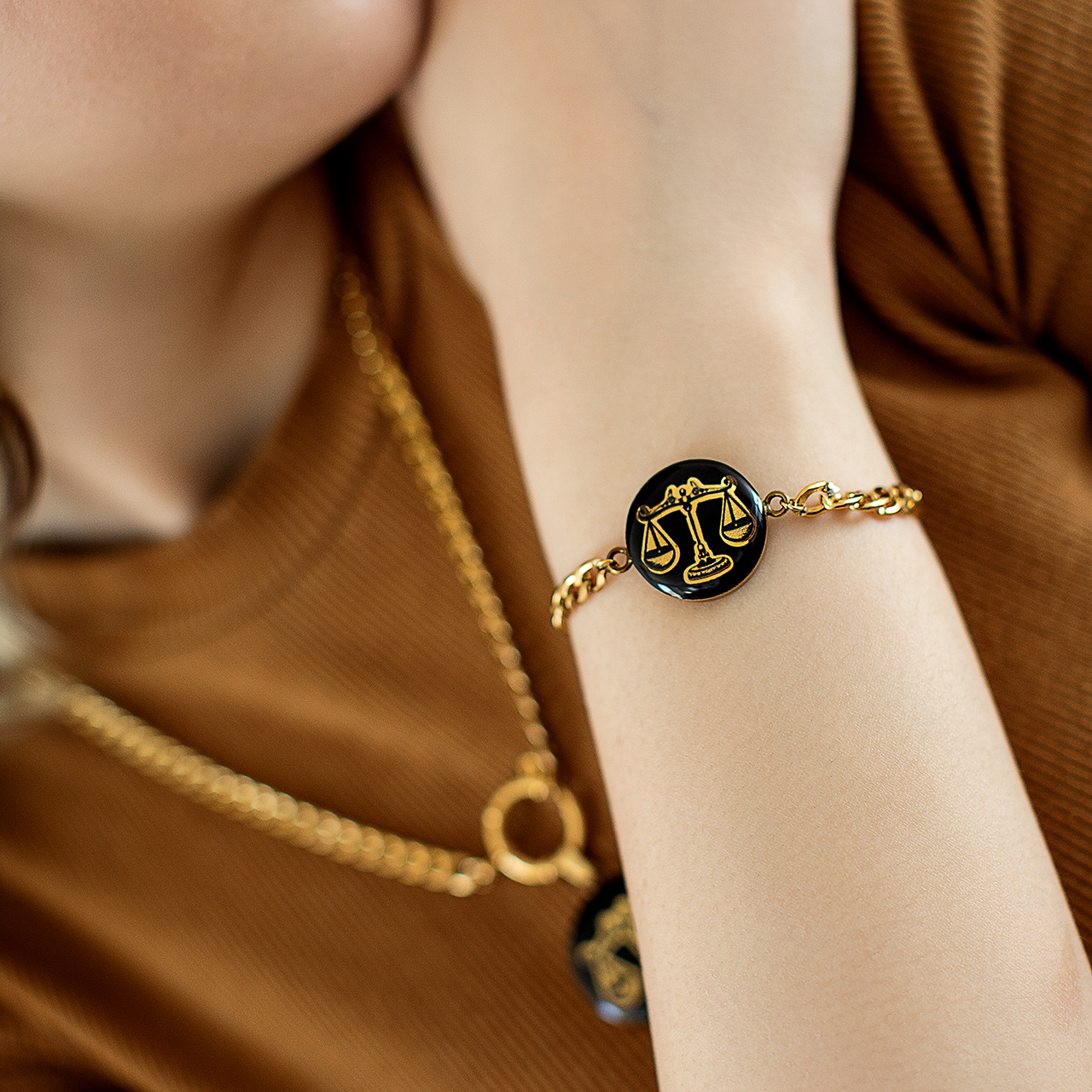 • دستبندچرم طلاکوب نماد ماه مهر GEL07